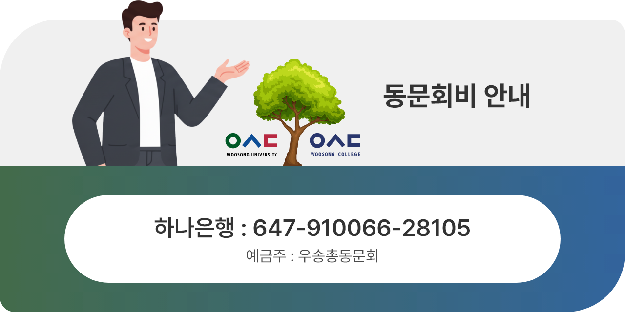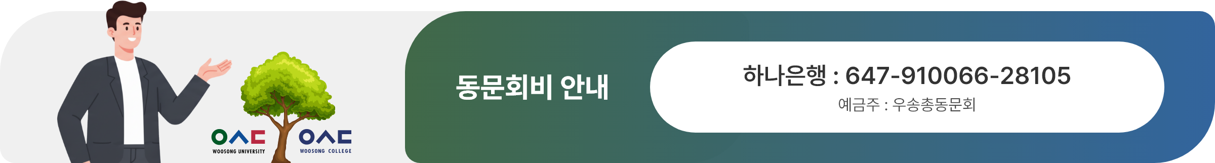 우송총동문회 홈페이지가 11월 말 경 정식 오픈 예정입니다. 동문 여러분들의 많은 관심 부탁드리겠습니다.